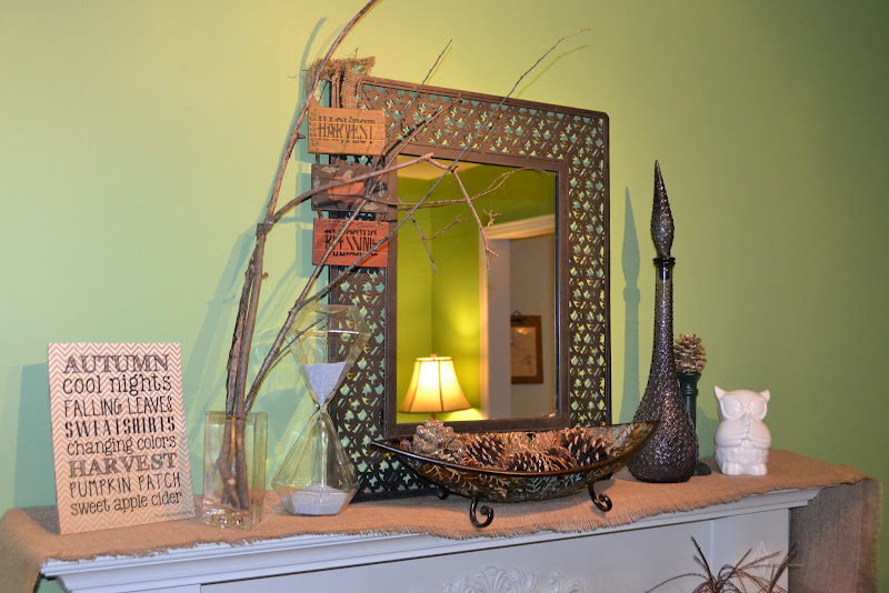 So here we are, after Thanksgiving and I'm just getting to pulling out the Fall decorations. Since I've been reading blogs over the last year, I've seen many awesome mantels/vignettes and I would have thought to pull them off would require big bucks.